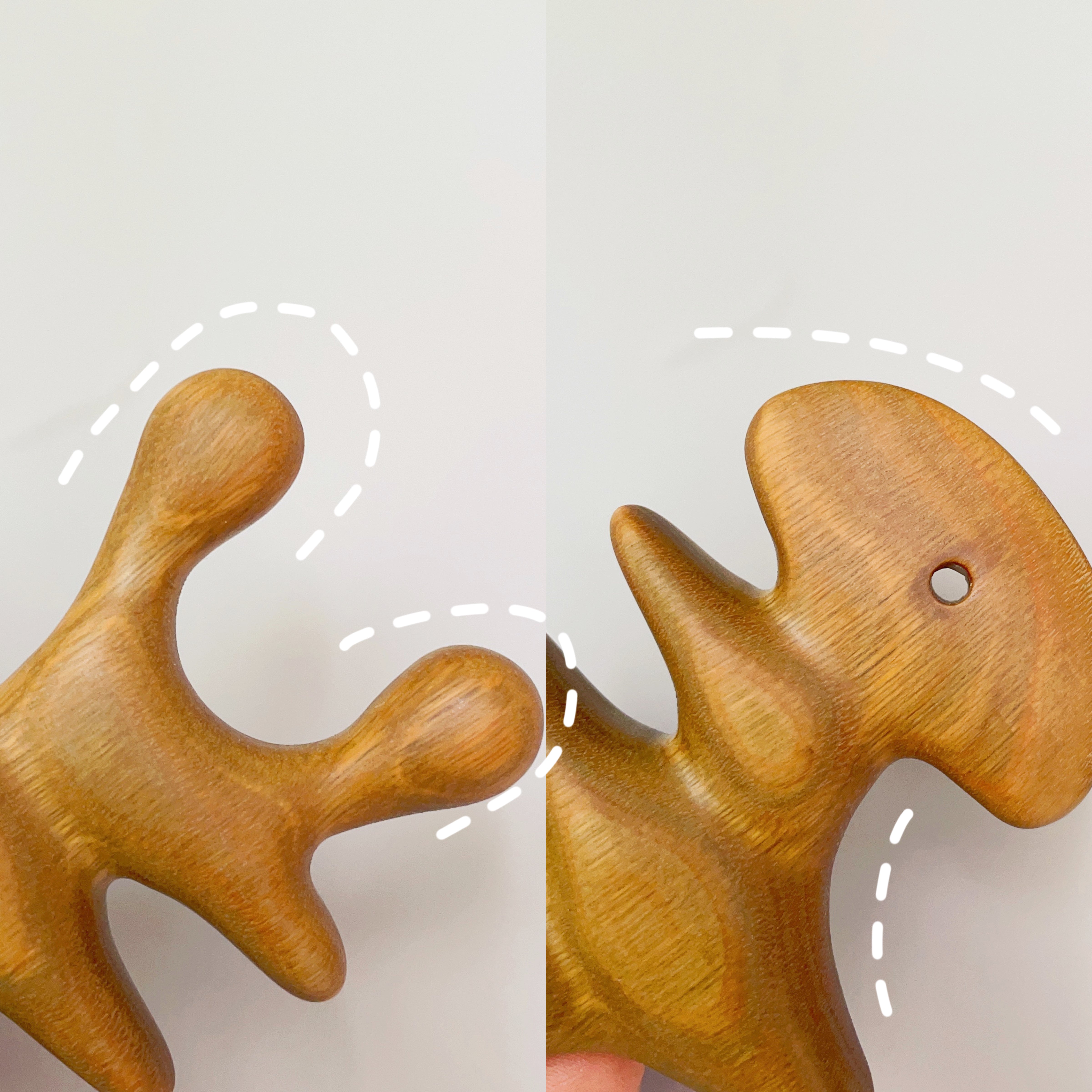 Each TanmuCare Almighty Massage Tool is handcrafted from a single, high-quality piece of green sandalwood. Every tool has its unique pattern given by nature. We do not add any additional ingredients or artificially dye or treat the massage tool, allowing you to make the most of the natural benefits of sandalwood.