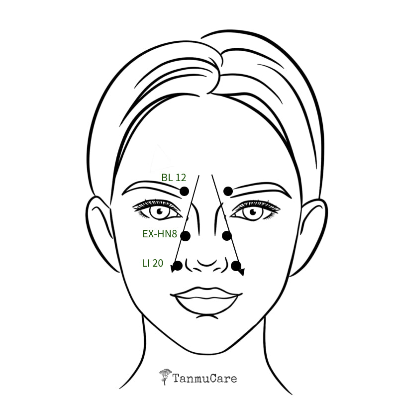 - Acupressure: Massage 3 key acupoints around the nose with the U-curve, 20-30 times per point.